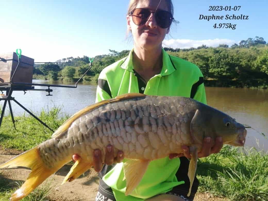 I fished with 2 x Bloekom Heuning Sluggers complemented by a small piece of white dough and backed with a Honey Glow Chooby.